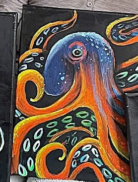 Pick your vibe when you arrive: Planets, spaceships, octopus, or go rogue and create your own design. No experience needed. Just come ready to paint, laugh, and glow.