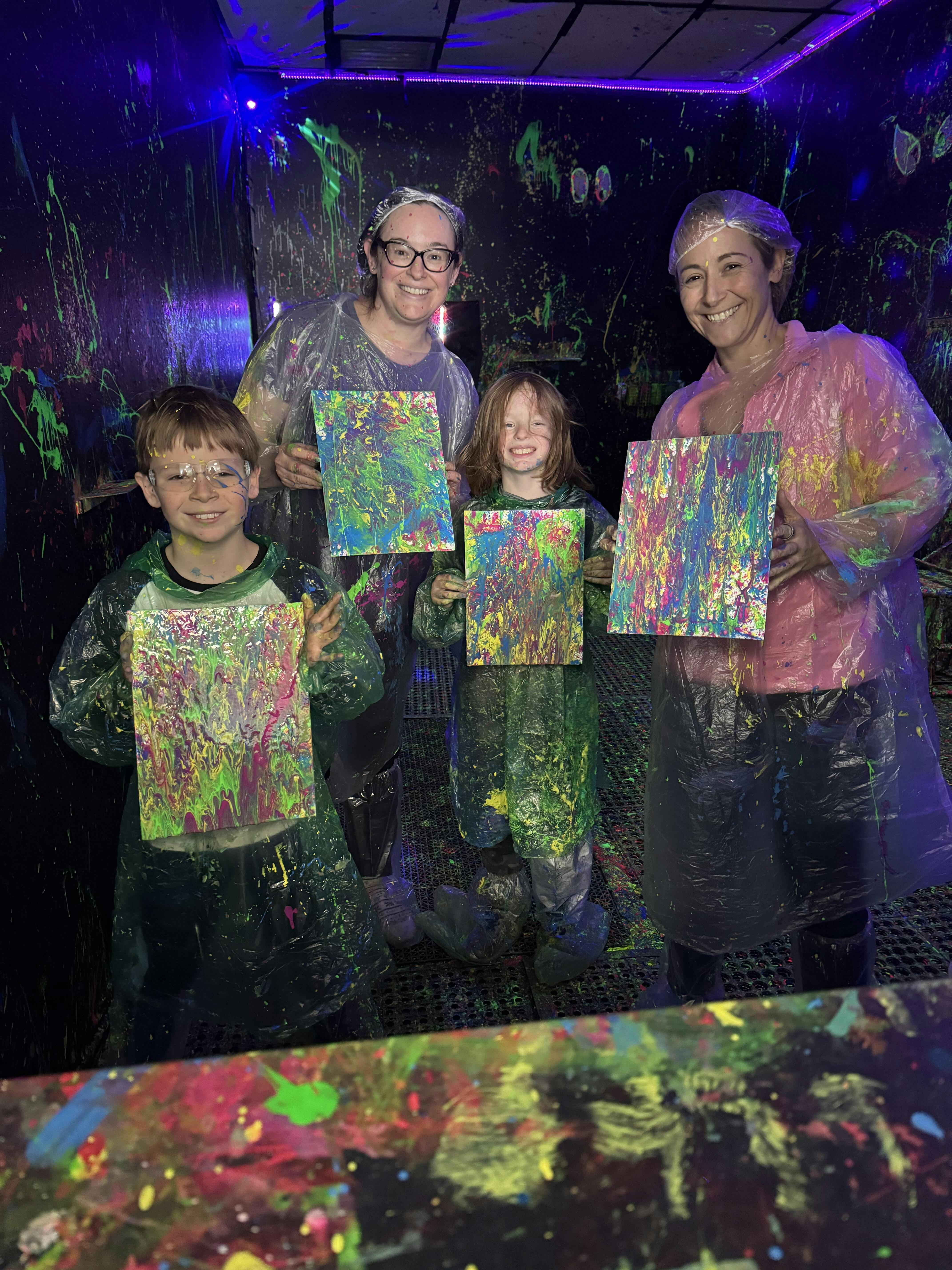 My daughter, grandkids, and I had such a wonderful experience. We made necklaces and then the kids went in the splat room and laughed and giggled and splattered each other. It was a world of fun for them and fun for us to watch. Thank you, Laura. What a great time we had!